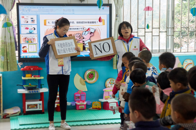 本次活動(dòng)邀請(qǐng)藥品安全合作聯(lián)盟(PSM)廣州軍區(qū)總醫(yī)院分站的志愿者彭?,摗Ⅰ貎晌?/span>藥師,一同走進(jìn)廣東省育才幼兒園二院,舉辦“安全用藥、娃娃抓起”兒童安全用藥科普知識(shí)講座。宣講專家精心設(shè)計(jì)了講課和游戲內(nèi)容,緊貼兒童日常用藥,實(shí)用性強(qiáng),通俗易懂,從藥物基本知識(shí)、安全用藥注意事項(xiàng)、藥品儲(chǔ)存使用科普知識(shí)等方面向幼兒園小朋友進(jìn)行安全用藥宣教,現(xiàn)場(chǎng)還播放了孩子們喜聞樂見的安全用藥動(dòng)畫短片,開展了藥品安全知識(shí)為主題的游戲互動(dòng),深受小朋友歡迎。