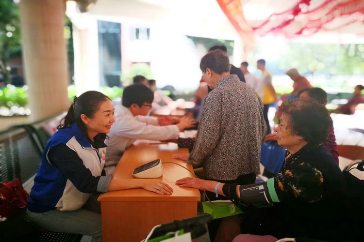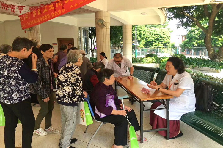 活動(dòng)的第二階段是義診,由廣州醫(yī)科大學(xué)附屬第一醫(yī)院和廣州軍區(qū)廣州總醫(yī)院醫(yī)療團(tuán)隊(duì)皮膚科、眼科、風(fēng)濕科、神經(jīng)科、內(nèi)科、藥物咨詢等領(lǐng)域?qū)<页鲈\,老人們結(jié)合自己身體狀況選擇,排隊(duì)參加義診或咨詢。