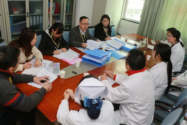隨后評估專家組分成三個小組開展評估,采用查看文件、座談交流、現(xiàn)場考核、現(xiàn)場查看等方式,按照廣東省藥學會藥物臨床試驗專業(yè)委員會的評估標準,對14個專業(yè)科室的人員組成、醫(yī)療狀況及急救條件、制度/SOP制訂、臨床試驗相關(guān)的設(shè)施等情況進行詳細檢查,并著重對專業(yè)組成員GCP和臨床試驗技術(shù)以及相關(guān)SOP等進行了考核。