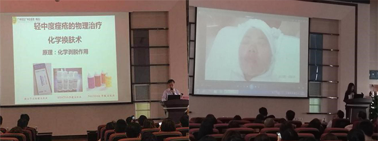 廖元興教授講授《痤瘡治療新進展》 梅奕潔醫(yī)生講授《超分子水楊酸實操演示》