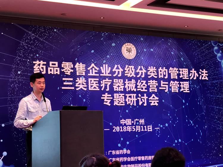 2018年5月11日下午,“藥品零售企業(yè)分級分類的管理辦法 三類醫(yī)療器械經(jīng)營與管理專題研討會主持”在廣州順利召開,廣東省食品藥品監(jiān)督管理局藥品流通安全監(jiān)管處龔俊杰主任科員,廣州市食品藥品監(jiān)督管理局醫(yī)療器械安全監(jiān)管處徐國炬調(diào)研員,廣東省藥學(xué)會鄭志華秘書長等出席。100多名廣東省藥學(xué)會醫(yī)療零售藥房管理專家委員會(下稱“專委會”)的專家及代表參會。研討會由專委會主委、中山大學(xué)孫逸仙紀(jì)念醫(yī)院逸仙大藥房李國成主任主持。