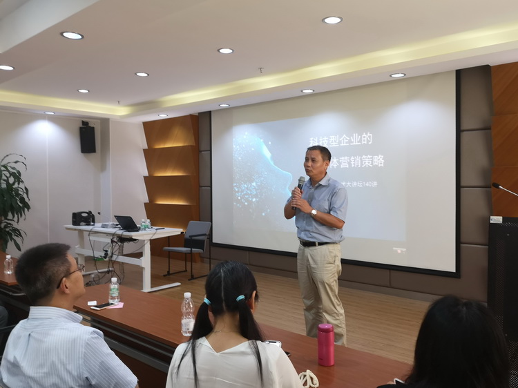 竇文宇教授是廣告研究領域國際頂尖、極具影響力的知名學者,曾多次應邀在全球各大頂尖院校做學術報告,為多個行業(yè)協(xié)會做有關社交媒體營銷及電子商務方面的專題講演。會上,竇教授直指科技型中小企業(yè)的營銷痛點,用一家B2B(專業(yè)購買者)醫(yī)療信息企業(yè)的新媒體營銷歷程作案例分析,用通俗易懂的方式為在座企業(yè)人員介紹了新媒體營銷策略的關鍵特征及目的,并詳細普及了社交媒體營銷戰(zhàn)略的流程及公司視角涉及的相關知識,從內容營銷四維度,闡述了B2B內容營銷的特點。深入淺出的介紹新媒體營銷的兩翼(社交媒體營銷和內容營銷)的目的、流程及方法。會后,竇教授還耐心解答了“小兵如何實現(xiàn)營銷逆襲?”、“新媒體營銷有何短板?”、“新媒體營銷:哪里可以深造提高?”等問題。