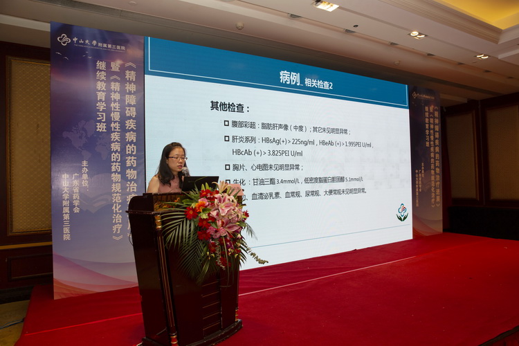 中山三院鄭丹微臨床藥師從一例臨床具體病例入手,通過結(jié)合患者既往病史、現(xiàn)病史和合并癥,對(duì)既往精神分裂癥后抑郁障礙的患者藥物治療方案的選擇、聯(lián)合用藥的考慮、不良反應(yīng)的監(jiān)測(cè)等方面,層層深入分析,思路清晰。使學(xué)員們對(duì)抗精神病藥物在抑郁障礙治療中的應(yīng)用有了進(jìn)一步的認(rèn)識(shí)。