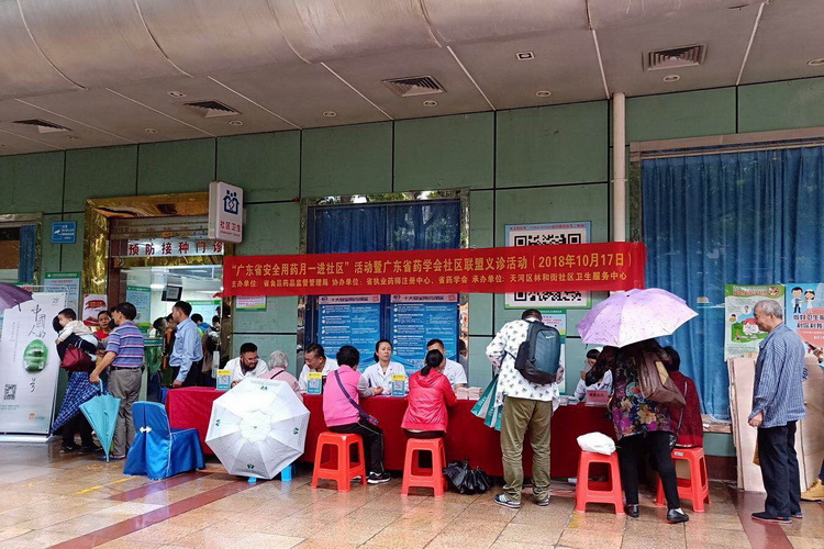 根據(jù)《“十三五”國家藥品安全規(guī)劃》要求,由廣東省食品藥品監(jiān)督管理局統(tǒng)一部署,經(jīng)廣東省執(zhí)業(yè)藥師注冊中心、廣東省藥學(xué)會認(rèn)真籌劃,在廣東省藥學(xué)會社區(qū)聯(lián)盟的大力支持下,“2018廣東省安全用藥月活動——六進(jìn)活動之進(jìn)社區(qū)活動”,于2018年10月17日在廣州市有關(guān)社區(qū)街道同時啟動,分別包括:天河區(qū)林和街、天河區(qū)天園街、天河區(qū)員村街、海珠區(qū)南石頭街、海珠區(qū)鳳陽街、越秀區(qū)洪橋街、越秀區(qū)光塔街、荔灣區(qū)逢源街、荔灣區(qū)多寶街、番禺區(qū)大石街、番禺區(qū)橋南街、番禺區(qū)南村街、番禺區(qū)東環(huán)街、白云區(qū)京溪街、白云區(qū)同德街、白云區(qū)黃石街、白云區(qū)石井街、白云區(qū)石門街、白云區(qū)新市街、白云區(qū)均禾街等區(qū)街,同時開展活動。