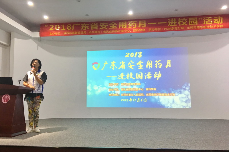 “2018廣東省安全用藥月――進校園”系列活動,由廣東省藥品監(jiān)督管理局主辦,廣東省執(zhí)業(yè)藥師注冊中心、廣東省藥學會協(xié)辦,廣東省藥學會科普專業(yè)委員會、PSM廣東總站承辦。組織醫(yī)院藥學專家團隊,以“安全用藥”為主題,開展科普宣教活動。