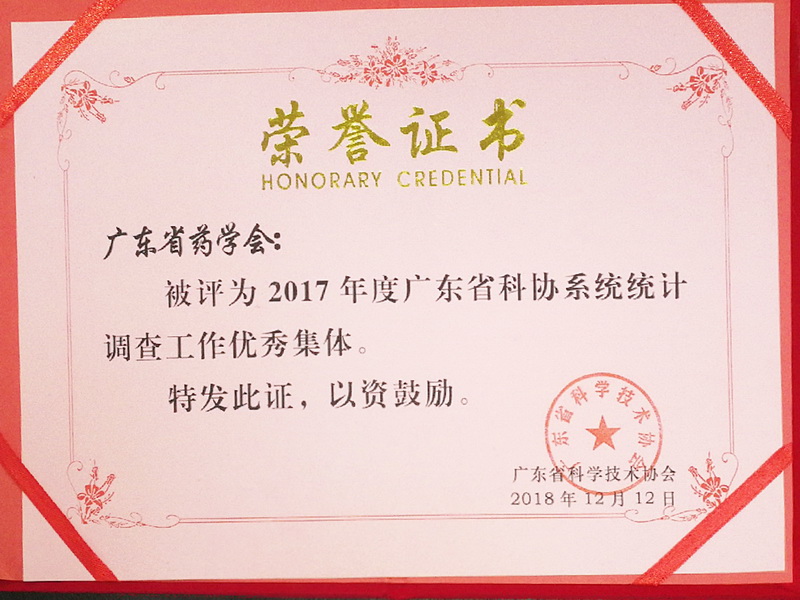 本會(huì)被評(píng)為2017年度廣東省科協(xié)系統(tǒng)統(tǒng)計(jì)調(diào)查工作優(yōu)秀集體