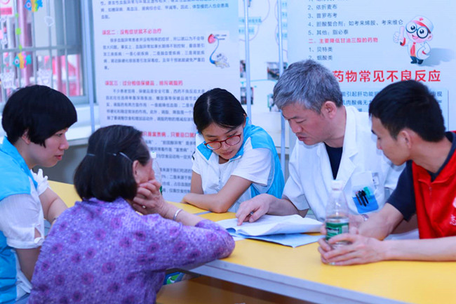 臨床藥師成鳳英與居民進(jìn)行現(xiàn)場(chǎng)知識(shí)問(wèn)答互動(dòng)