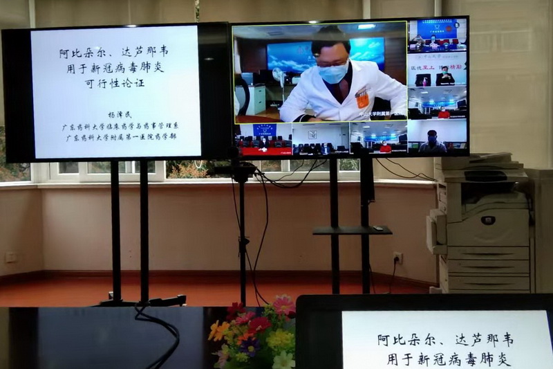 2020年2月6日深夜,受廣東省衛(wèi)生健康委的委派,楊澤民教授組織了以黨員同志為主的臨床藥學(xué)重點(diǎn)學(xué)科和高水平臨床藥學(xué)重點(diǎn)??迫藛T進(jìn)行“阿比朵爾、達(dá)蘆那韋用于新型冠狀病毒肺炎可行性論證”討論會(huì),經(jīng)過(guò)專業(yè)的論證,提出“阿比朵爾可試用于高危人群的預(yù)防和在嚴(yán)格觀察下試用于危重患者的治療”,得到各位專家和廣東省衛(wèi)健委相關(guān)領(lǐng)導(dǎo)的認(rèn)同。