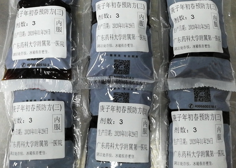 針對(duì)當(dāng)前的疫情形勢(shì),結(jié)合嶺南氣候、水土、飲食、人文等特點(diǎn),為了加強(qiáng)防護(hù),提高本院職工的抵抗力,經(jīng)藥學(xué)部、醫(yī)務(wù)部、中醫(yī)科牽頭和協(xié)作,按照中醫(yī)科洪敏主任的經(jīng)驗(yàn)方,決定對(duì)本院職工免費(fèi)派發(fā)“庚子年初春預(yù)防方”和“辟瘟囊”,中藥房積極協(xié)調(diào)制備,從1月28日開(kāi)始至今,大量發(fā)放湯劑和辟瘟囊供院內(nèi)有需要的職工領(lǐng)用,得到廣泛好評(píng)。