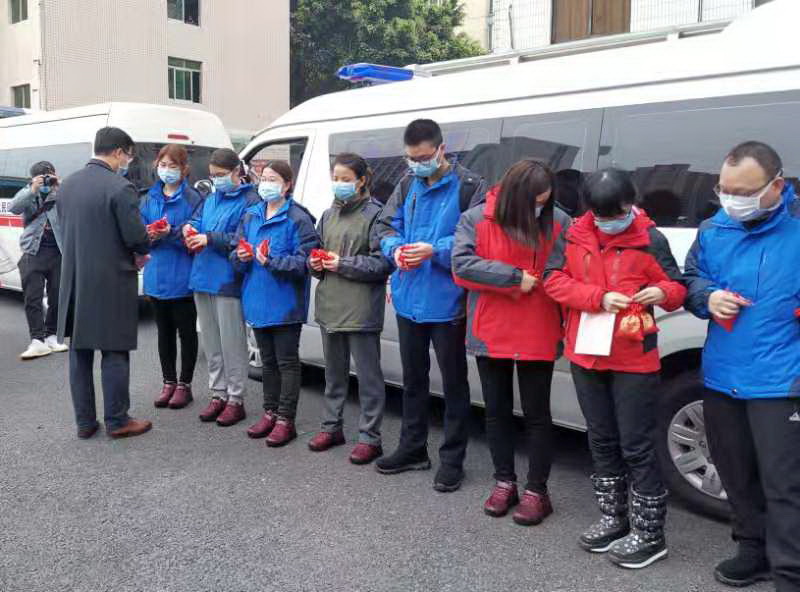 院領(lǐng)導(dǎo)給援助湖北荊州醫(yī)療隊的白衣勇士們贈送防疫香囊