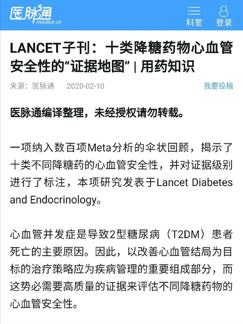 近期,中山大學(xué)孫逸仙紀(jì)念醫(yī)院藥學(xué)部在伍俊妍主任的帶領(lǐng)下,由朱建紅主管藥師為第一作者,廣東省藥學(xué)會(huì)王勇主管藥師亦作為共同第一作者,伍俊妍主任藥師為通訊作者,撰寫的《降糖藥心血管安全性的證據(jù)圖研究》一文發(fā)表在最新一期的《柳葉刀-糖尿病及內(nèi)分泌學(xué)》:Association of glucose-lowering medications with cardiovascular outcomes: an umbrella review and evidence map (Lancet Diabetes Endocrinol 2020;8(3):192-205.)。該論文以“Article”形式發(fā)表在Lancet Diabetes Endocrinol雜志,文章來(lái)源:https://www.thelancet.com/journals/landia/article/PIIS2213-8587(19)30422-X/fulltext。