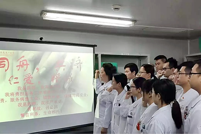 廣州醫(yī)科大學(xué)附屬第一醫(yī)院藥學(xué)部藥師們以“南山精神”為榜樣,莊嚴(yán)宣誓:勇?lián)人婪鰝姑M心盡責(zé),傾我所能,誓言所系,生命相托!