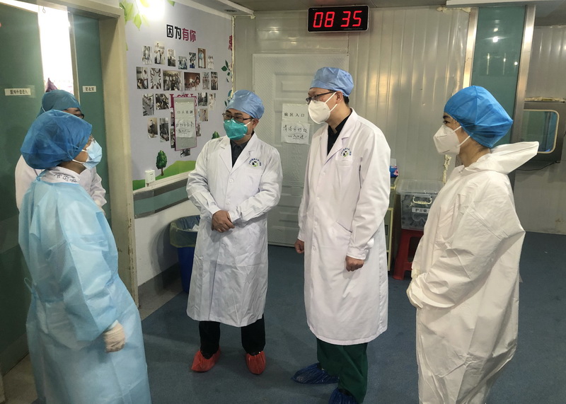 楊主委與醫(yī)療組在定點(diǎn)收治醫(yī)院開(kāi)展工作
