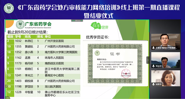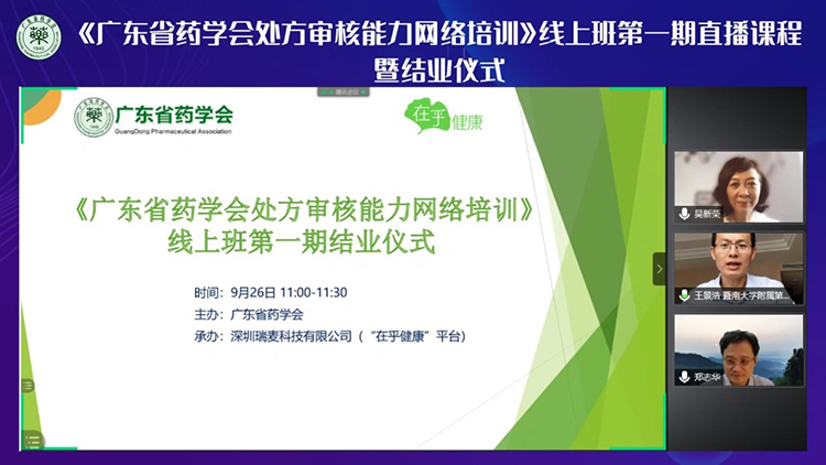 《廣東省藥學(xué)會(huì)處方審核能力網(wǎng)絡(luò)培訓(xùn)》線上班第一期結(jié)業(yè)儀式成功舉辦