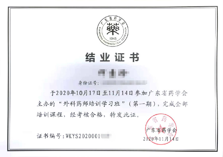 外科藥師培訓(xùn)結(jié)業(yè)證