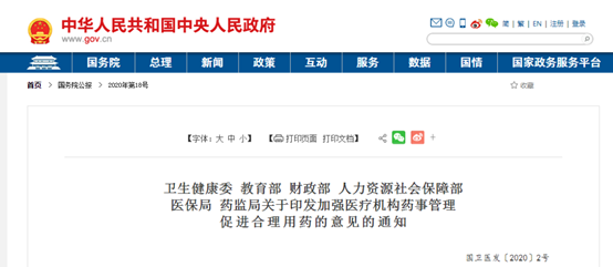 《關于印發(fā)加強醫(yī)療機構藥事管理、促進合理用藥的意見的通知》