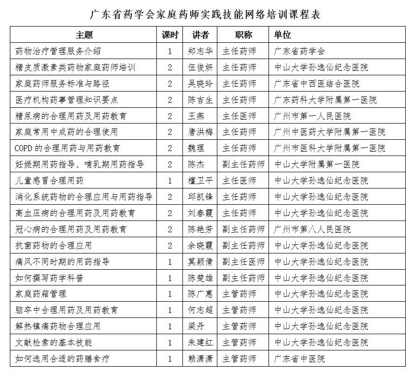 《廣東省藥學會家庭藥師實踐技能網絡培訓》開課!