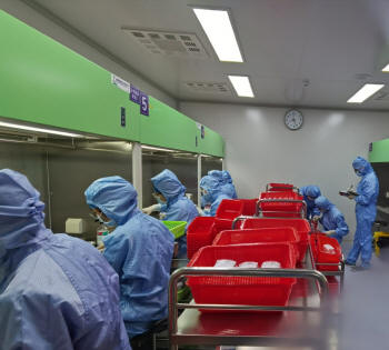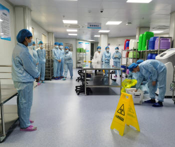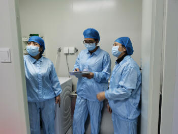 當(dāng)天早上七點半,在主管院長張遠起副院長、藥學(xué)部林志繡部長、靜配中心負責(zé)人謝麗明等人的陪同下,專家們來到評估現(xiàn)場,先查看靜配中心周圍環(huán)境及采風(fēng)口位置。然后在我院靜配中心負責(zé)人的指引下,按照我院靜配中心著裝管理要求,進行更衣、換鞋、戴帽后,即開展評估工作,現(xiàn)場查看工作流程及各方面的操作情況。三位專家首先進入普通藥品調(diào)配間,查看調(diào)配人員的無菌規(guī)范操作情況;再進入危害藥品調(diào)配間,根據(jù)危害藥品調(diào)配規(guī)范,檢查調(diào)配過程及個人防護;緊接著在成品輸液核對區(qū),檢查成品輸液的復(fù)核流程及質(zhì)量情況,了解自動化設(shè)備的運行情況;來到清洗間檢查各種用具的清洗消毒規(guī)程;在審方室考評了審方藥師的日常工作、醫(yī)囑審核軟件及標(biāo)簽設(shè)計等?,F(xiàn)場檢查工作完成后,即開始對文件資料的查看,對各項規(guī)章制度、操作規(guī)程、應(yīng)急預(yù)案、質(zhì)量持續(xù)改進等內(nèi)容逐一審查,期間隨機抽查工作人員進行現(xiàn)場提問及進行細胞毒藥物溢出處理演練。