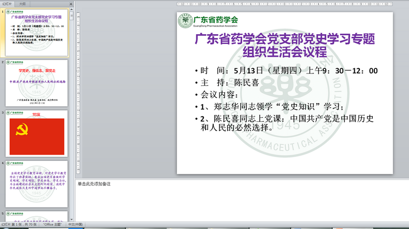 廣東省藥學(xué)會黨支部召開黨史學(xué)習(xí)專題組織生活會