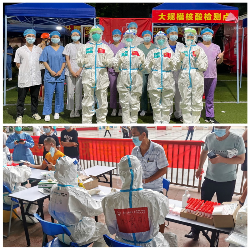 核酸采樣必須在通風(fēng)透氣的地方,加之近期廣州天氣多變,酷暑、暴雨、密不透風(fēng)的防護(hù)服,給工作人員無端增添了難以想象的困難。一輪工作下來時(shí),身上的衣服都被汗水濕透;但經(jīng)過短暫的修整后,面對現(xiàn)場等待核酸檢測的群眾,二話不說還要繼續(xù)投入工作。一個(gè)小時(shí)、兩個(gè)小時(shí)······幾個(gè)小時(shí),大家都堅(jiān)守崗位,規(guī)范各項(xiàng)操作。每天結(jié)束工作后往往已是深夜,但大家拖著疲憊的身軀互道辛苦后,仍積極報(bào)名參加第二天的核酸采樣工作,其中有幾位藥師先后共參與過5次,令人感動。