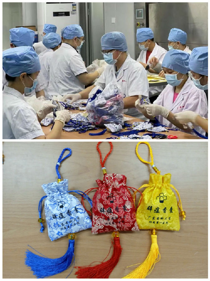 除了核酸采樣工作,藥學(xué)部黨支部利用中醫(yī)在防控瘟疫方面的優(yōu)勢和藥學(xué)人員豐富的中藥學(xué)知識、經(jīng)驗(yàn),于5月29日組織15名黨員、藥師利用周末時(shí)間緊急制作抗疫香囊。在時(shí)間緊、任務(wù)重、沒有機(jī)械化生產(chǎn)設(shè)備的條件下,藥學(xué)部支部書記陳永合理分配任務(wù),保證了各項(xiàng)工作有序進(jìn)行,在最短時(shí)間內(nèi)制作完成了500多個(gè)香囊并送至前線需要的人員手中,從另一方面支援抗疫戰(zhàn)場。