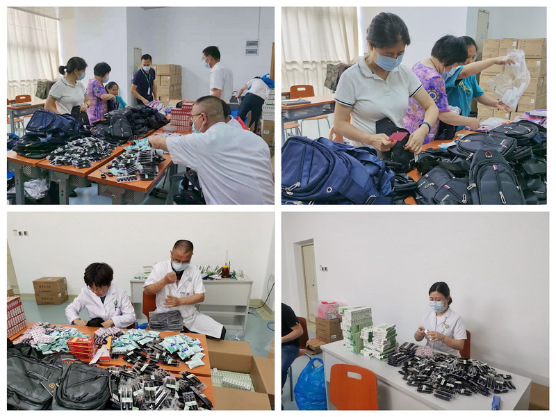 沒上一線的藥師也在積極為抗擊疫情做著力所能及的工作。由于深圳近期氣溫高、暴雨頻密,天氣濕熱,他們特意準備了1000份“防暑降溫愛心包”,送給“前線”醫(yī)務(wù)人員。
