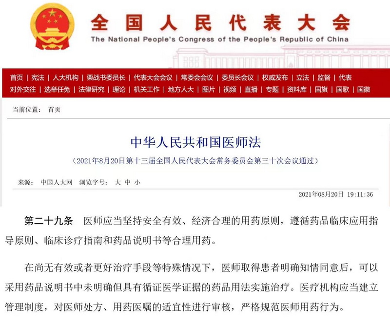 《中華人民共和國醫(yī)師法》(以下簡稱醫(yī)師法)即將于2022年3月1日起正式施行,首次將診療指南和循證醫(yī)學證據(jù)下的超藥品說明書用藥寫入法條。新醫(yī)師法明確了醫(yī)師在特殊情況下可以采用具有循證醫(yī)學證據(jù)的超藥品說明書用法的權(quán)利,為醫(yī)師基于循證醫(yī)學證據(jù)進行超說明書用藥提供了法律保障。