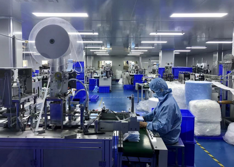 目前,公司主要生產(chǎn)醫(yī)用口罩、防護服、面罩、隔離衣、防霧鏡片等一系列防疫物資,嚴格按照國家醫(yī)療器械標準和質(zhì)量管理規(guī)范組織生產(chǎn),品種齊全、質(zhì)量安全、保障供給。還具備生產(chǎn)熔噴布和無紡布的能力。公司目前每天可生產(chǎn)無紡布3噸和熔噴布1噸左右,確保滿足生產(chǎn)100萬只口罩的需要。