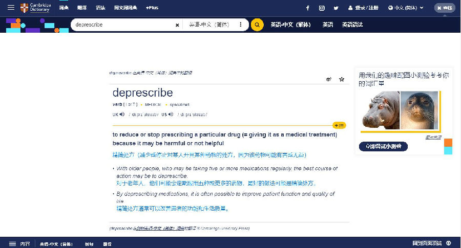 廣東省藥學(xué)會(huì)首譯的“處方精簡(jiǎn)(deprescribing)”被《劍橋詞典》收錄