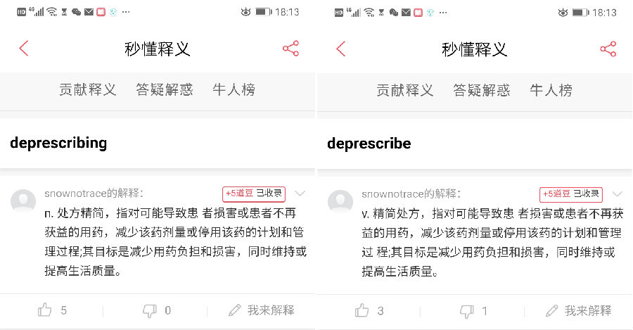 圖6 “網(wǎng)易有道詞典”在“秒懂釋義”收錄本會(huì)提供的翻譯“處方精簡(jiǎn)(deprescribing)”“精簡(jiǎn)處方(deprescribe)”(snownotrace為廣東省藥學(xué)會(huì)副理事長(zhǎng)鄭志華網(wǎng)名)