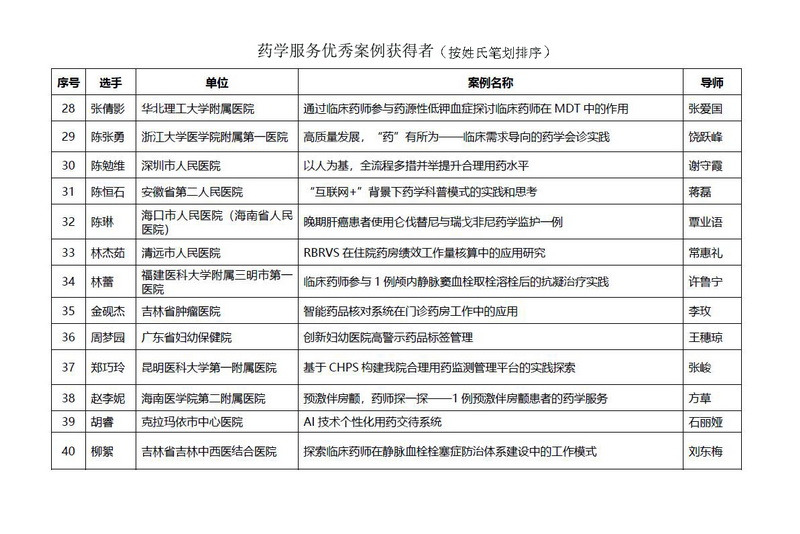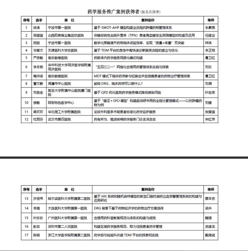 3個(gè)榮獲“藥學(xué)服務(wù)優(yōu)秀案例”為: