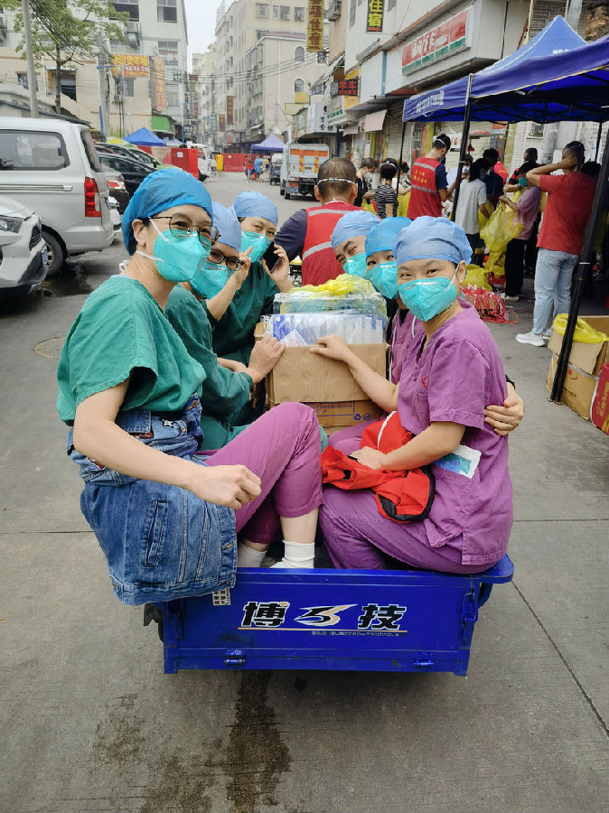 在海珠封控區(qū)執(zhí)行任務(wù)的楊欣博士,他家就是在海珠區(qū),因?yàn)榧依锉环饬?,所以他毅然決然直接加入海珠區(qū)支援突擊隊(duì)。他說(shuō)道:“在海珠這高風(fēng)險(xiǎn)區(qū)域,樓與樓之間非常緊密,都是密密麻麻的巷子樓,潛在陽(yáng)性病例較多,每天上門挨家挨戶地做抗原檢測(cè)、核酸檢測(cè)、進(jìn)行排查,最大的困難就是剛?cè)サ臅r(shí)候?qū)ι祥T采樣地理位置不熟悉,住所比較密集,尋覓位置相對(duì)比較困難,需要一戶戶進(jìn)行電話咨詢。每天掃樓任務(wù)非常艱巨,有時(shí)候要工作到半夜,但為了居民的生命健康,為了能盡快解封早日完成任務(wù),也是毫無(wú)怨言,砥礪前行?!?