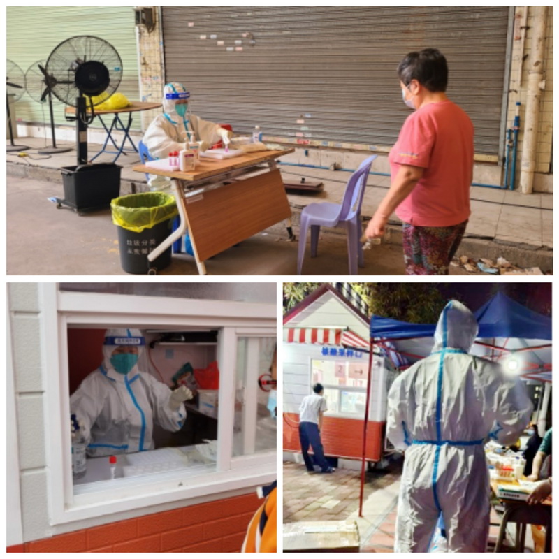 三、支援核酸采樣任務。在疫情防控復雜嚴峻、藥學部人手嚴重緊張的情況下,藥學部依然克服困難,做到業(yè)務、抗疫兩手抓。當醫(yī)院發(fā)出核酸采樣任務時,藥學部聞令而動,快速響應,每天派出人員支援醫(yī)院和社區(qū)核酸采樣工作,助力全市疫情防控阻擊戰(zhàn)。有剛下夜班直接投入戰(zhàn)斗的,有早起上了一天班未曾停歇的,有連續(xù)上班十多天未曾休假的……星夜兼程,輪番作戰(zhàn),大家不曾畏懼,心中信念一致,完成黨和人民交托的任務,保一方百姓平安。