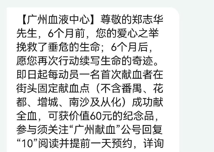 其實(shí),不用廣州血液中心的短信提醒,他早已準(zhǔn)備前往獻(xiàn)血了,同事們聽到他念叨幾次說要抽空去趟中華廣場。