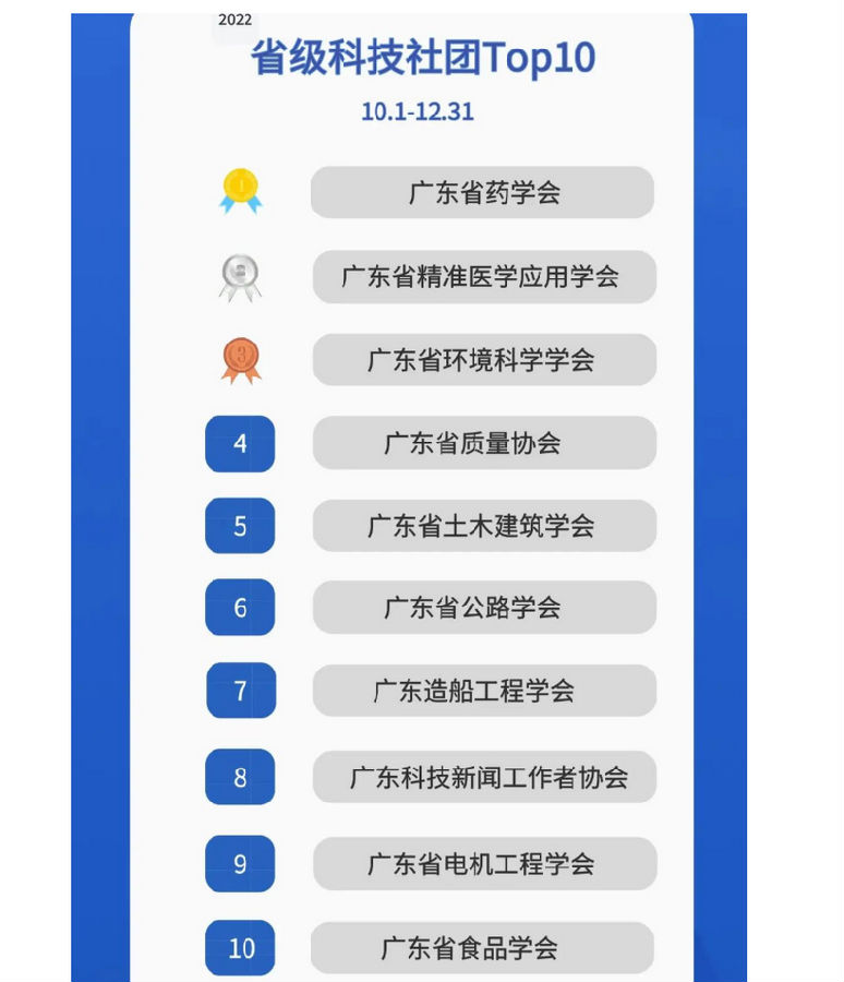 2022年第四季度省級科技社團TOP10榜