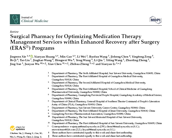 《臨床醫(yī)學(xué)雜志》發(fā)表“外科藥學(xué)用于優(yōu)化加速康復(fù)外科(ERAS?)的藥物治療管理服務(wù)”綜述