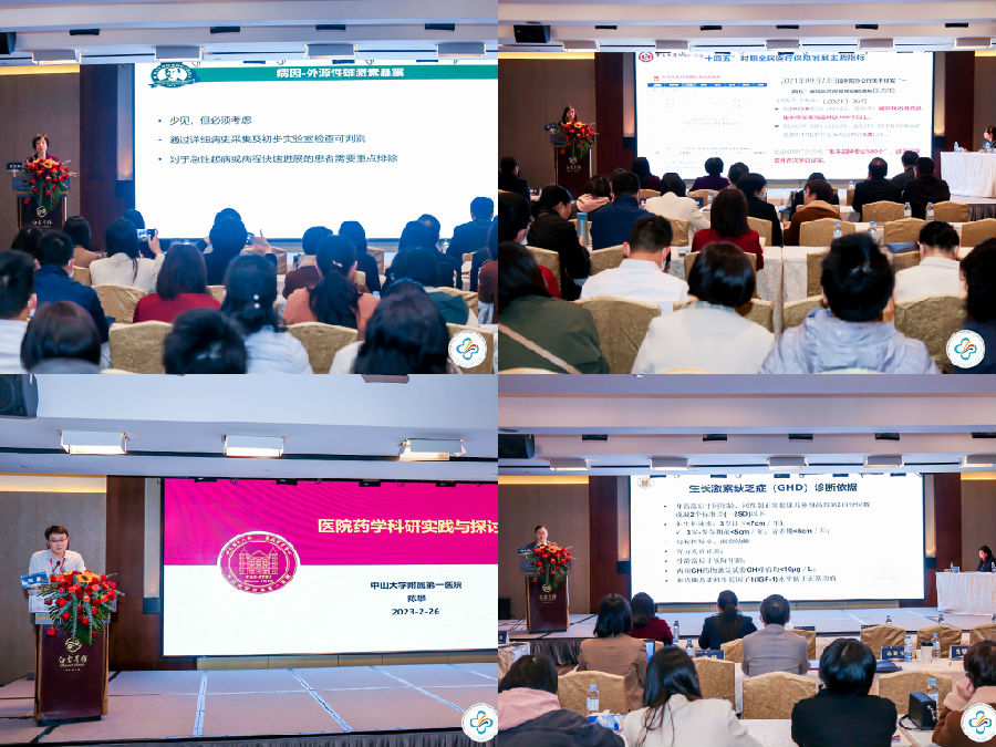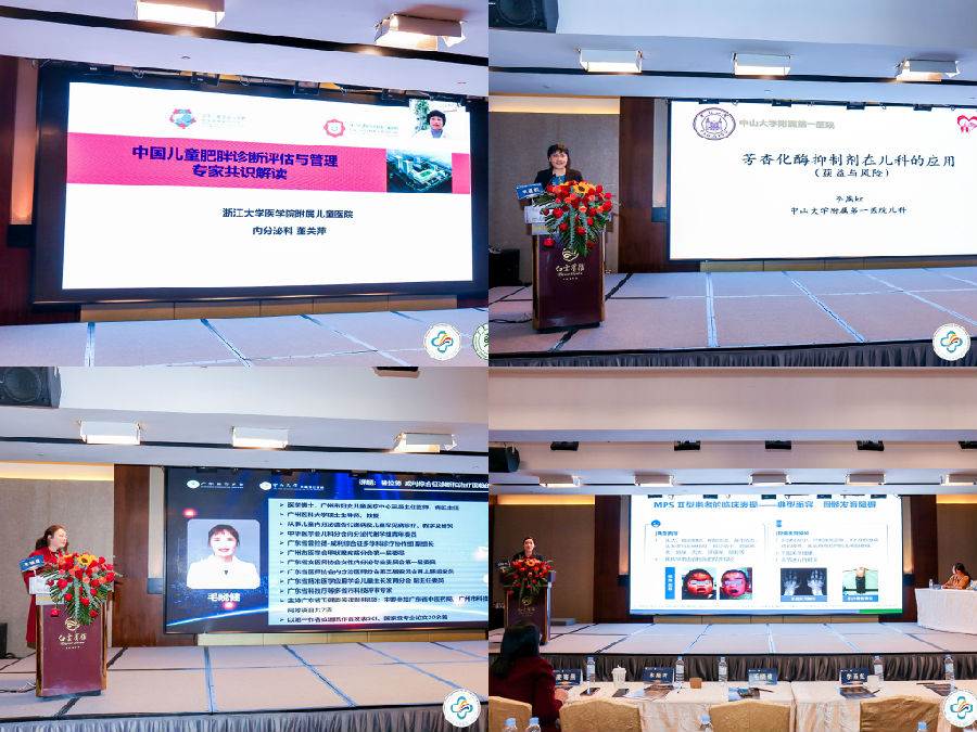 當(dāng)天,還進(jìn)行了內(nèi)容豐富的學(xué)術(shù)會(huì)議。會(huì)議邀請(qǐng)到多位來自廣東省內(nèi)及省外的專家學(xué)者進(jìn)行精彩的學(xué)術(shù)講座。中山大學(xué)孫逸仙紀(jì)念醫(yī)院的梁立陽教授帶來《兒童及青少年期女孩男性化的評(píng)估和診斷策略》的講座,梁教授總結(jié)了女孩男性化的表現(xiàn),病因方面需重點(diǎn)關(guān)注腎上腺和卵巢疾病,并詳細(xì)講述了女孩男性化的診斷評(píng)估流程。來自華中科技大學(xué)同濟(jì)醫(yī)學(xué)院附屬同濟(jì)醫(yī)院的羅小平教授帶來了《GnRHa治療特發(fā)性中樞性性早熟患兒的長(zhǎng)期療效和安全性的薈萃分析》的線上講座。羅教授分享了中樞性性早熟的最新進(jìn)展,梳理了中樞性性早熟診斷和治療的規(guī)范流程并強(qiáng)調(diào)長(zhǎng)期管理的重要性。中山大學(xué)附屬第六醫(yī)院黎小妍教授帶來了《集采之下合理用藥與藥學(xué)精細(xì)化管理》的講座,黎教授詳細(xì)講解了藥品集中采購的相關(guān)政策和制度,提出了實(shí)現(xiàn)藥品集采科學(xué)化、精細(xì)化管理的措施和路徑,以更好的滿足臨床需求,促進(jìn)科學(xué)發(fā)展。中山大學(xué)附屬第三醫(yī)院麥海燕教授帶來《重組人生長(zhǎng)激素長(zhǎng)效制劑的應(yīng)用》的講座,麥教授回顧了生長(zhǎng)激素研發(fā)和制備的發(fā)展歷史,并對(duì)比長(zhǎng)效生長(zhǎng)激素不同制備技術(shù),U型結(jié)構(gòu)的PEG化學(xué)修飾技術(shù)具有生物活性、穩(wěn)定性及安全性高的明顯優(yōu)勢(shì)。中山大學(xué)附屬第一醫(yī)院陳攀教授帶來了《兒童人群的藥學(xué)科研》的講座,陳教授分享了他的科研經(jīng)驗(yàn)和科研案例,為我們?cè)敿?xì)地講解了集采背景下的藥品評(píng)價(jià)、真實(shí)世界藥物不良反應(yīng)研究、個(gè)體化用藥研究和循證藥學(xué)的科研思路。在下午的學(xué)術(shù)會(huì)議中,中山大學(xué)附屬第一醫(yī)院陳秋莉教授帶來了《矮身材的診治規(guī)范》,陳教授詳細(xì)講述了矮小的病因、診斷及rhGH的規(guī)范化治療,并分享了最新的癌癥幸存者GH治療共識(shí)。浙江大學(xué)醫(yī)學(xué)院附屬兒童醫(yī)院董關(guān)萍教授帶來了《中國(guó)兒童肥胖診斷評(píng)估與管理專家共識(shí)解讀》的線上講座。董教授詳細(xì)講解了兒童超重和肥胖如何進(jìn)行及時(shí)合理的診斷評(píng)估和治療,生活方式干預(yù)是治療的關(guān)鍵,同時(shí)提出對(duì)肥胖患兒的管理需要政府、學(xué)校、家庭和醫(yī)院的共同關(guān)注。中山大學(xué)附屬第一醫(yī)院李燕虹教授帶來了《來曲唑在兒科的應(yīng)用》的講座。李教授為我們分享了她在臨床中對(duì)性早熟和青春期矮小的患兒使用芳香化酶抑制劑治療的經(jīng)驗(yàn),并結(jié)合最新文獻(xiàn)進(jìn)行講解,該藥物治療屬于超說明書用藥,臨床醫(yī)生需嚴(yán)格把控,避免濫用,并需在用藥過程中密切監(jiān)測(cè)不良副作用。專委會(huì)主委、中山大學(xué)附屬第三醫(yī)院朱順葉教授為我們帶來了《粘多糖貯積癥Ⅱ型臨床診斷和治療專家共識(shí)》的精彩講座。朱教授對(duì)MPSⅡ型患者臨床表現(xiàn)、診斷、治療、遺傳咨詢與產(chǎn)前診斷等方面進(jìn)行了歸納,酶替代治療是有效的治療方式,早診斷早治療可顯著改善患者預(yù)后、延緩疾病進(jìn)展。最后,廣州市婦女兒童醫(yī)療中心毛曉健教授分享了《普拉德-威利綜合征診斷與治療面臨的挑戰(zhàn)》的講座。毛教授分享了她對(duì)普拉德-威利綜合征的診治經(jīng)驗(yàn),詳細(xì)講述了目前PWS在早期識(shí)別、早期診斷、合理治療、多學(xué)科管理方面所面臨的挑戰(zhàn)和應(yīng)對(duì)措施,以盡可能改善PWS患兒的生存質(zhì)量。