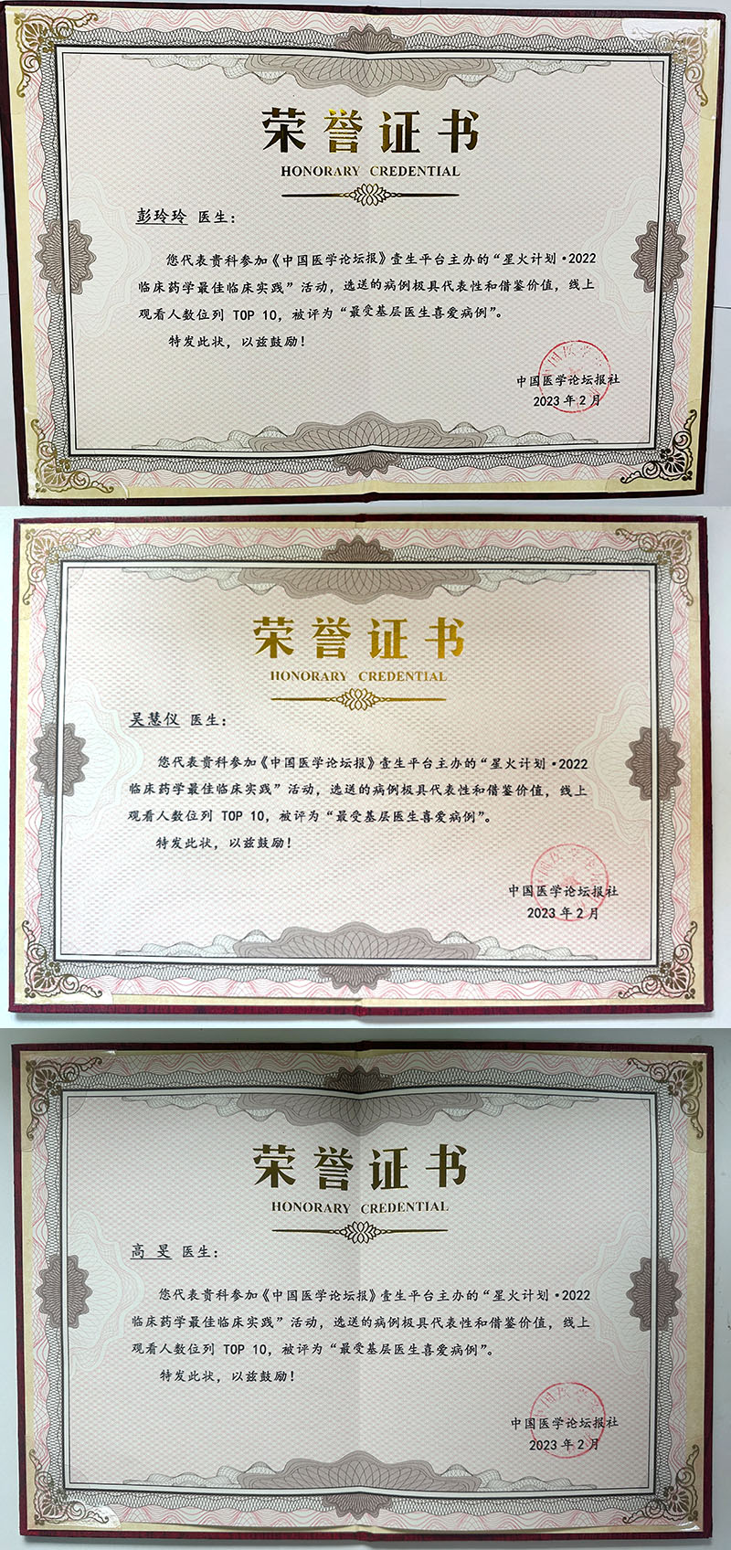 近日,為表彰廣東省藥師團隊在全國大型公益類培訓項目“星火計劃——提升基層醫(yī)生規(guī)范化診療能力”中的優(yōu)秀表現(xiàn),主辦單位中國醫(yī)學論壇報社為廣東省藥學團隊頒發(fā)了多項榮譽證書,其中: