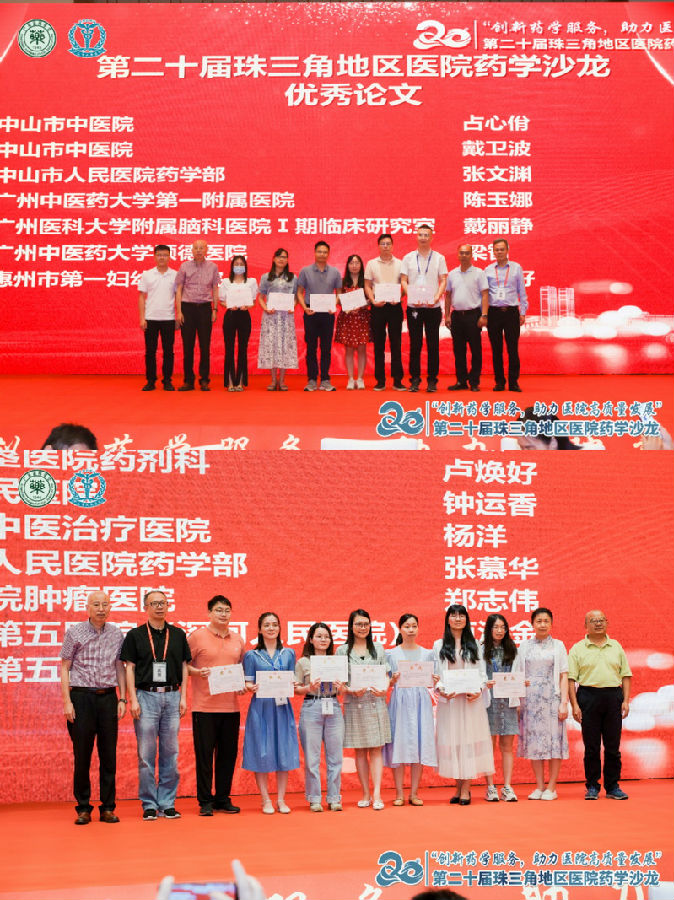 本屆沙龍延續(xù)舉行優(yōu)秀論文評比,共征集學術(shù)論文54篇,內(nèi)容涉及醫(yī)改與醫(yī)院藥學、用藥分析、藥學服務(wù)與實踐、藥事管理、實驗研究及藥學專論等內(nèi)容,編輯出版了2023年《第20屆珠三角地區(qū)醫(yī)院藥學沙龍會刊》(第17卷),并評出15篇優(yōu)秀論文:中山市中醫(yī)院占心佾、中山市中醫(yī)院戴衛(wèi)波、中山市人民醫(yī)院藥學部張文淵、廣州中醫(yī)藥大學第一附屬醫(yī)院陳玉娜、廣州醫(yī)科大學附屬腦科醫(yī)院Ⅰ期臨床研究室戴麗雅、廣州中醫(yī)藥大學順德醫(yī)院梁智、惠州市第一婦幼保健院劉燕好、羅定市人民醫(yī)院藥學部吳敏、肇慶市高要區(qū)人民醫(yī)院藥學部張慕華、廣東省茂名農(nóng)墾醫(yī)院藥劑科盧煥好、東莞市第五人民醫(yī)院鐘運香、深圳市寶安純中醫(yī)治療醫(yī)院楊洋、汕頭大學醫(yī)學院腫瘤醫(yī)院鄭志偉、暨南大學附屬第五醫(yī)院(深河人民醫(yī)院)盧渭金、中山大學附屬第五醫(yī)院方瓊彤。