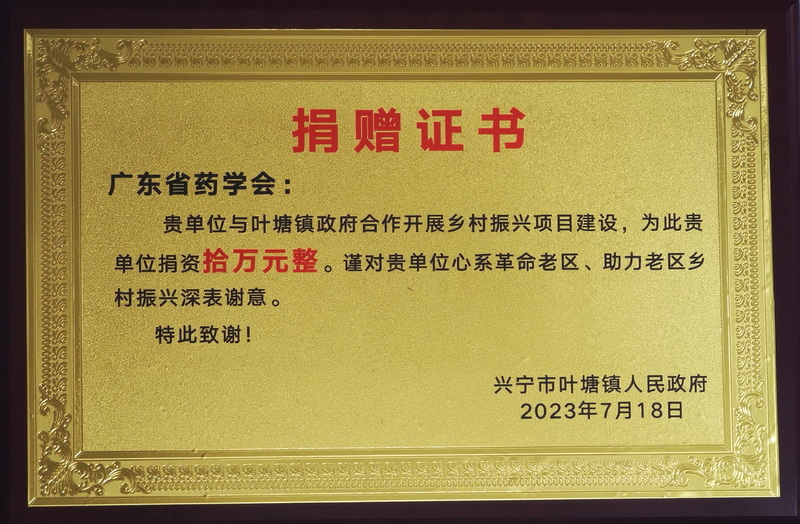 2022年12月20日,支部書記兼執(zhí)行秘書長陳民喜親自參加由省局組織的“助力鄉(xiāng)村振興行調(diào)研活動”,專程前往興寧市葉塘鎮(zhèn),參與座談,參觀考察,同與會專家一道,為助力葉塘鎮(zhèn)振興出力獻計;學(xué)會秘書處、黨支部還研究決定,由學(xué)會捐贈人民幣10萬元,捐助葉塘鎮(zhèn)中藥材種植相關(guān)產(chǎn)業(yè)振興項目及鎮(zhèn)公共設(shè)施建設(shè),并于近日收到了葉塘鎮(zhèn)人民政府寄來的捐贈榮譽證書。