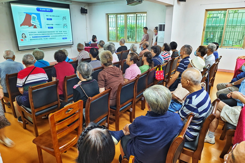 第一環(huán)節(jié):“科普小講課”,由賦能藥師以科普課堂形式,向與會老干部及家屬們講解冠心病的合理用藥和低血糖的防范科普知識,老人們聽得聚精會神。