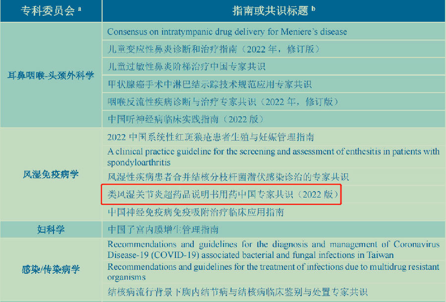 近期,STAR工作組對(duì)2022年指南和共識(shí)進(jìn)行了評(píng)級(jí)工作,由廣東省藥學(xué)會(huì)風(fēng)濕免疫用藥專家委員會(huì)發(fā)起、中山大學(xué)孫逸仙紀(jì)念醫(yī)院風(fēng)濕免疫科和藥學(xué)部制訂的《類風(fēng)濕關(guān)節(jié)炎超藥品說明書用藥中國(guó)專家共識(shí)(2022版)》被評(píng)選為2022年度TOP300指南/共識(shí)。