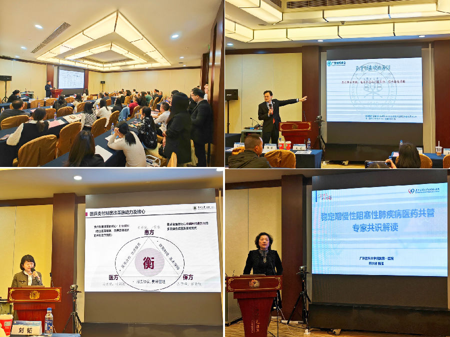 中山大學(xué)腫瘤防治中心劉韜主任、南方醫(yī)科大學(xué)珠江醫(yī)院王勇主任以及廣東省藥學(xué)會(huì)王勇主任擔(dān)任會(huì)議主持。廣州醫(yī)科大學(xué)附屬第一醫(yī)院魏理主任以《穩(wěn)定期慢性阻塞性肺疾病醫(yī)藥共管專(zhuān)家共識(shí)》的精彩分享為會(huì)議拉開(kāi)了序幕。她從醫(yī)藥共管的實(shí)施流程以及該模式下的獲益等方面對(duì)醫(yī)藥共管專(zhuān)家共識(shí)進(jìn)行了解讀,為促進(jìn)藥師參與慢阻肺治療藥物的管理工作、提升慢阻肺治療水平指出一條道路;緊接著的是廣東省第二人民醫(yī)院梅清華主任帶來(lái)的《加強(qiáng)藥事管理內(nèi)涵建設(shè),推動(dòng)醫(yī)院高質(zhì)量發(fā)展》主題分享。梅主任強(qiáng)調(diào)通過(guò)智慧藥學(xué)管理、互聯(lián)網(wǎng)處方流轉(zhuǎn)模式優(yōu)化、輔助用藥適應(yīng)癥管理等多維度來(lái)加強(qiáng)藥事管理內(nèi)涵建設(shè),為推動(dòng)醫(yī)院高質(zhì)量發(fā)展助力;中山大學(xué)附屬第一醫(yī)院唐欲博主任介紹了《DIP/DRG支付方式改革下醫(yī)院合理用藥管理思考》,從國(guó)家醫(yī)保破局的角度,以前中后期干預(yù)多維度對(duì)比用藥評(píng)價(jià)模式、創(chuàng)新處方審核與點(diǎn)評(píng)模式等方面引發(fā)對(duì)醫(yī)院合理用藥的管理思考。中山大學(xué)附屬第三醫(yī)院麥海燕主任從自身工作實(shí)踐出發(fā),以《公立醫(yī)院高質(zhì)量發(fā)展中藥學(xué)服務(wù)的探索》為題,概括介紹了醫(yī)院通過(guò)建立合理用藥的工作小組、創(chuàng)新智能化藥師指標(biāo)管理以及數(shù)智輔能等方式,分享互聯(lián)網(wǎng)醫(yī)院發(fā)展下的藥學(xué)服務(wù)探索的工作經(jīng)驗(yàn),以促進(jìn)高質(zhì)量發(fā)展醫(yī)院特色工作的開(kāi)展。廣東省藥學(xué)會(huì)鄭志華副理事長(zhǎng)則基于《藥學(xué)門(mén)診的優(yōu)勢(shì)病種》,對(duì)藥學(xué)服務(wù)收費(fèi)、用藥精簡(jiǎn)處方、藥物管理以及藥師審方進(jìn)行了生動(dòng)的講解,強(qiáng)調(diào)了藥師在門(mén)診中的至關(guān)重要不可取代的地位,對(duì)藥師的價(jià)值予以了肯定,提出藥事管理工作需要藥師、醫(yī)院、企業(yè)積極參與,共同努力。