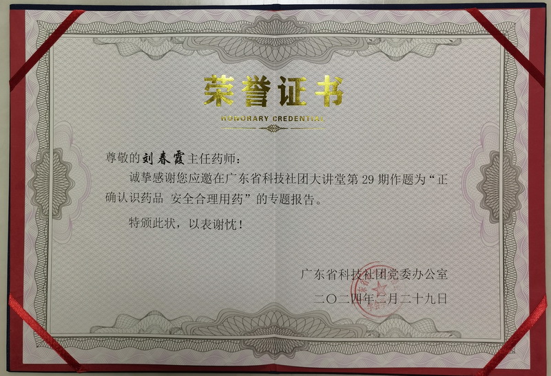 2月29日下午,本會(huì)藥學(xué)科普專(zhuān)家委員會(huì)主任委員劉春霞應(yīng)邀到廣東省科技社團(tuán)大講堂,做健康科普講座,主題:《正確認(rèn)識(shí)藥品 安全合理用藥》。