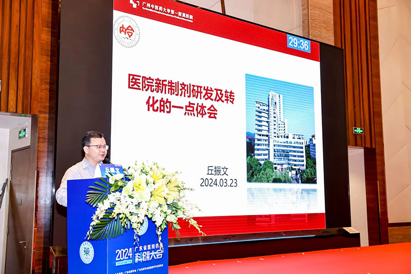 廣州中醫(yī)藥大學(xué)第一附屬醫(yī)院丘振文主任作《醫(yī)院新制劑研發(fā)及轉(zhuǎn)化的一點(diǎn)體會(huì)》報(bào)告