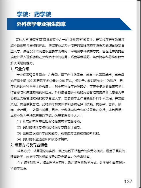 日前,吉林大學(xué)“外科藥學(xué)”微專業(yè)開始招生,參加學(xué)員將獲得醫(yī)藥高等教育第一個外科藥學(xué)修業(yè)證書!