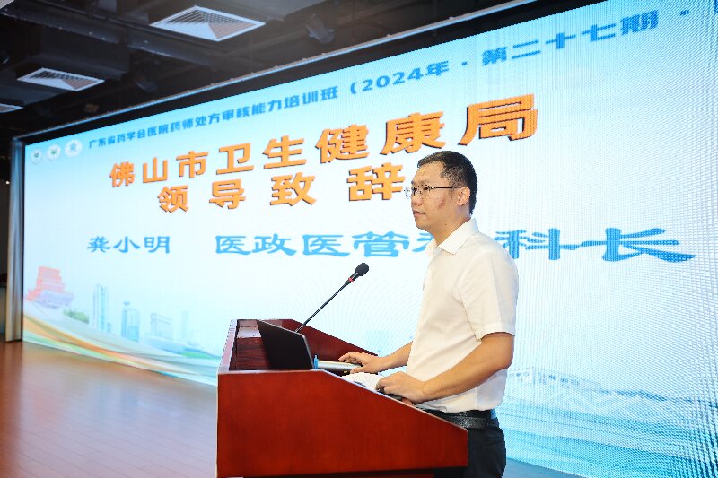佛山市衛(wèi)生健康局醫(yī)政醫(yī)管科科長龔小明在致辭中表示:本次審方班不僅是對佛山地區(qū)藥師專業(yè)能力的提升,更是對醫(yī)療質量和患者安全的高度負責。希望各位學員能夠認真聆聽,掌握更全面的藥學專業(yè)知識,提高處方審核能力,從而加強全市藥師隊伍建設,為患者提供更優(yōu)質、更安全的藥學服務。