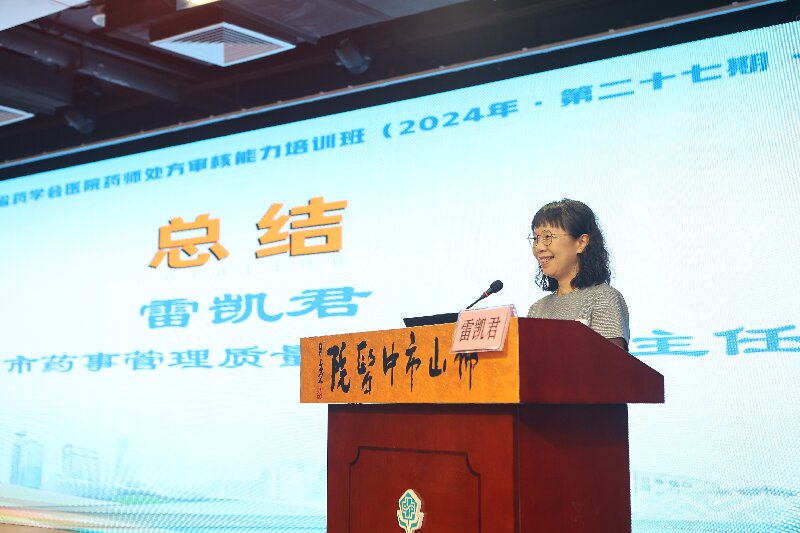雷凱君科長為培訓班作總結講話,對本次培訓的各位專家老師們以及工作人員的付出表示衷心感謝,她表示結業(yè)應當作一個新的起點,在未來的工作中,我們將面臨更多更復雜的情況和挑戰(zhàn)。希望學員們能將所學到的知識和技能運用到實踐工作中去,積累經驗,提升自己。同時表示佛山市中醫(yī)院作為佛山市藥事管理質量控制中心掛靠單位,未來,將繼續(xù)積極開展各類培訓,不斷提升全市藥師的專業(yè)素質和服務能力。
