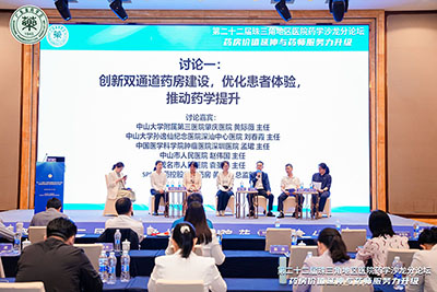 在會議中,中山大學(xué)附屬第七醫(yī)院周本杰主任、佛山市第二人民醫(yī)院姚暉主任、廣東醫(yī)科大學(xué)附屬醫(yī)院江東波主任、SPS+國藥控股專業(yè)藥房李雪紅副總監(jiān),分別作了題為“處方精簡與慢病用藥管理”“藥師的價值體現(xiàn)與能力提升”“雙通道服務(wù)模式及實踐探析”“醫(yī)保支付方式改革下雙通道藥房的協(xié)同”的報告。藥學(xué)主任與專業(yè)藥房代表圍繞“創(chuàng)新雙通道藥房建設(shè),優(yōu)化患者體驗,推動藥學(xué)提升”“藥師崗位勝任力優(yōu)化升級”等熱點話題,共同探討并發(fā)表見解。