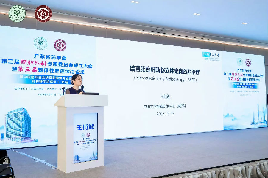 中山大學腫瘤防治中心王俏鏇主任分享“結直腸癌肝轉移立體定向放射治療”的相關技術和臨床應用,尤其是磁共振引導肝臟腫瘤立體定向放療的臨床經(jīng)驗,肯定了SBRT的優(yōu)勢。